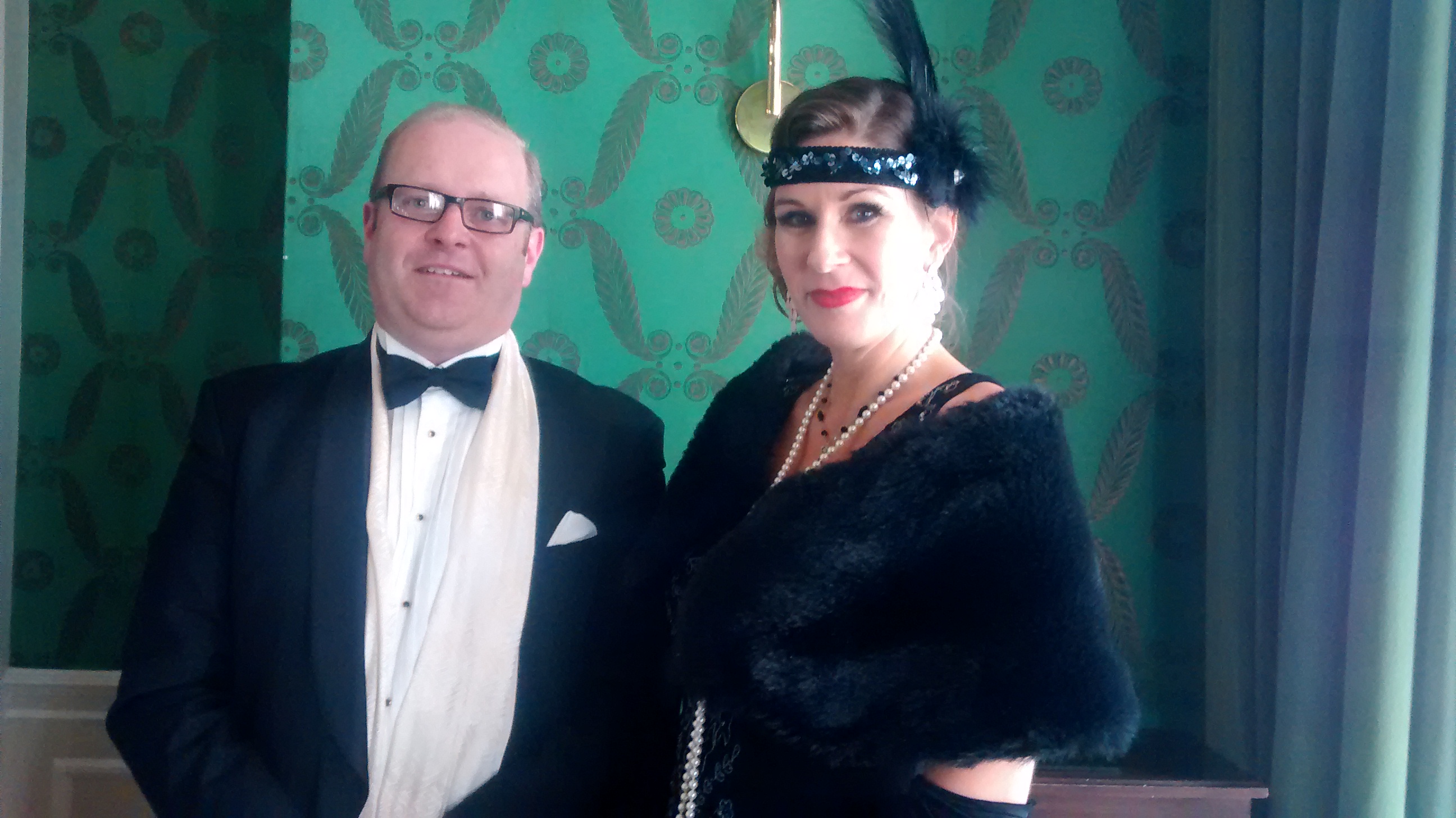 Samantha Hay and Luke Green recreating a 1920s celebrity recital.